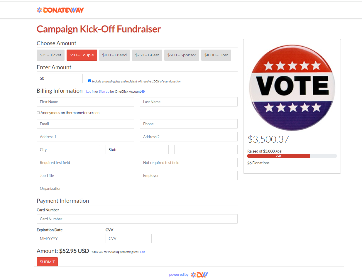 Create unlimited fundraising pages with our great looking forms, and even customize your own fields to collect the information you need for a successful campaign.